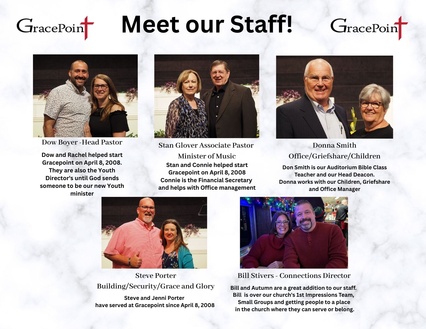 Gracepoint Church is blessed to have a leadership team who are truly dedicated to Christ and accomplishing His will.